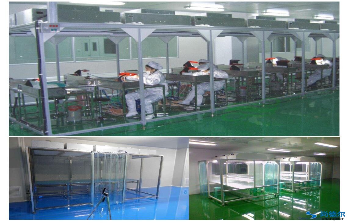 潔淨棚采用工業鋁材(或不鏽鋼方通、鐵方通噴(pēn)塑)作為框架(jià),風(fēng)機濾網機組(FFU)送風,四周懸掛防靜電(diàn)垂簾(或(huò)鋼化玻璃),其內部淨(jìng)化級別可達到100-10000級。適用於操作區內局部淨化(huà)級別要求高的區(qū)域。