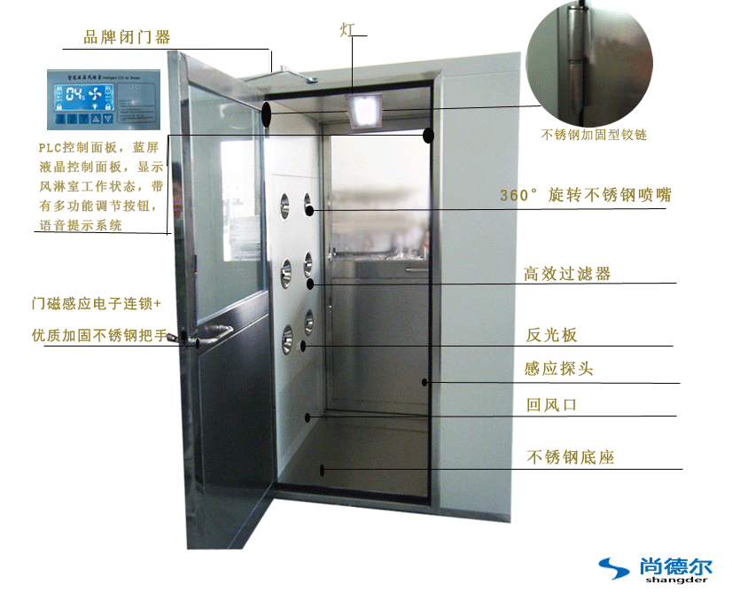 風淋室(AIR SHOWER)又稱為風淋,潔(jié)淨(jìng)風淋室,淨化風淋室,風淋房,吹淋房,風淋門,浴塵室、吹淋室,風淋(lín)通道,空氣吹淋室。風淋室是(shì)進入潔淨室所必需的通道,可以減少進出(chū)潔淨室(shì)所(suǒ)帶來的汙染問題。
